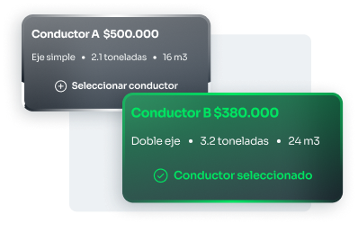 El sistema consolida las cargas, rutea de forma óptima, y se asignan viajes basado en nuestro modelo de subasta inversa a proveedores.